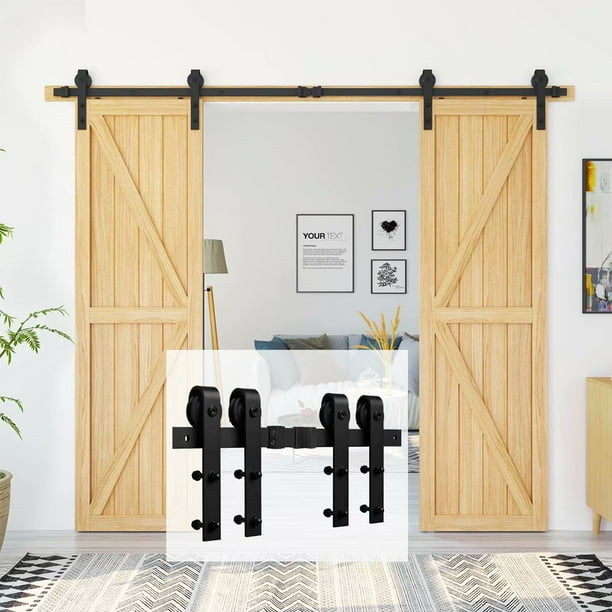 Homacer sliding barn door hardware single track bypass double door kit, 10ft flat track classic design roller, black rustic heavy duty interior exterior use.