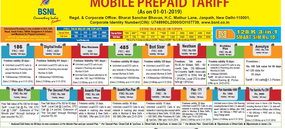Bsnl's latest validity extension plan has been offered at rs 599. But in some states, you need to top up a minimum of. The plan offers validity extension for six months and also offers unlimited calling. Read on to know more about the new prepaid plan by.